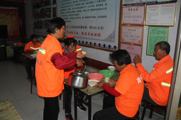 于是,在眾多志愿者的幫助下,青州市第一家環(huán)衛(wèi)工愛心就餐點(diǎn)在石福軍的包子鋪正式掛牌,到現(xiàn)在已經(jīng)是整整兩年的時(shí)間了。每天早上6:00—6:30,包子鋪里有兩張餐桌是空著的,環(huán)衛(wèi)工人們就會(huì)如約而至,就像回到了自己家里一樣。