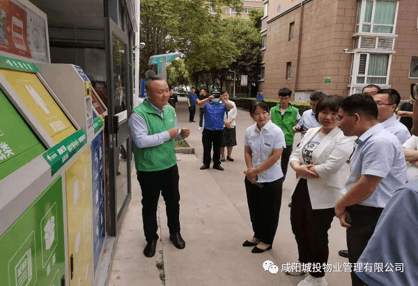 調(diào)研團一行人現(xiàn)場聽取了城投物業(yè)愿景園小區(qū)負責人的介紹,觀看垃圾分類智能收集演示、查看垃圾分類資料臺賬、垃圾分類知識宣傳欄、了解垃圾分類積分兌換的制度、垃圾收集量、垃圾投放處理及收運的時間和流程。