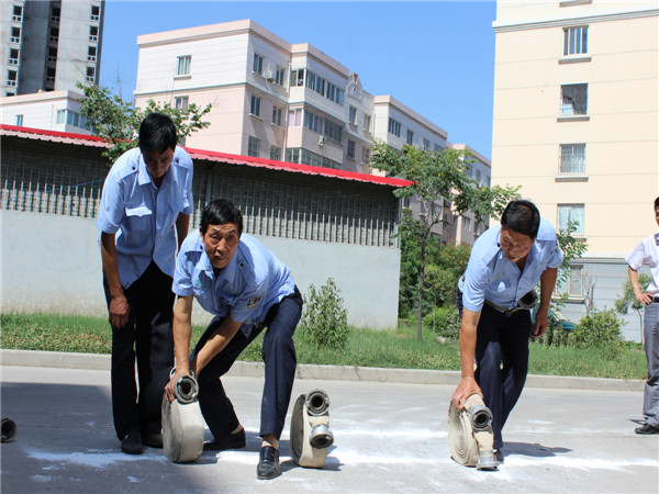 為了進(jìn)一步強(qiáng)化公司員工消防安全意識,提高抗擊突發(fā)事件的應(yīng)變能力,迅速有組織的安全疏散,掌握正確使用滅火器以及逃生的方法,在公司領(lǐng)導(dǎo)的大力支持和各部門的配合下,按照消防演練方案的相關(guān)要求,“2013年消防安全演習(xí)627日下午2:30在安谷苑小區(qū)進(jìn)行。主管安全工作的魏總親臨現(xiàn)場指導(dǎo),參加演練的除物業(yè)公司員工外還有陳楊辦以及安谷苑項(xiàng)目部的工作人員。