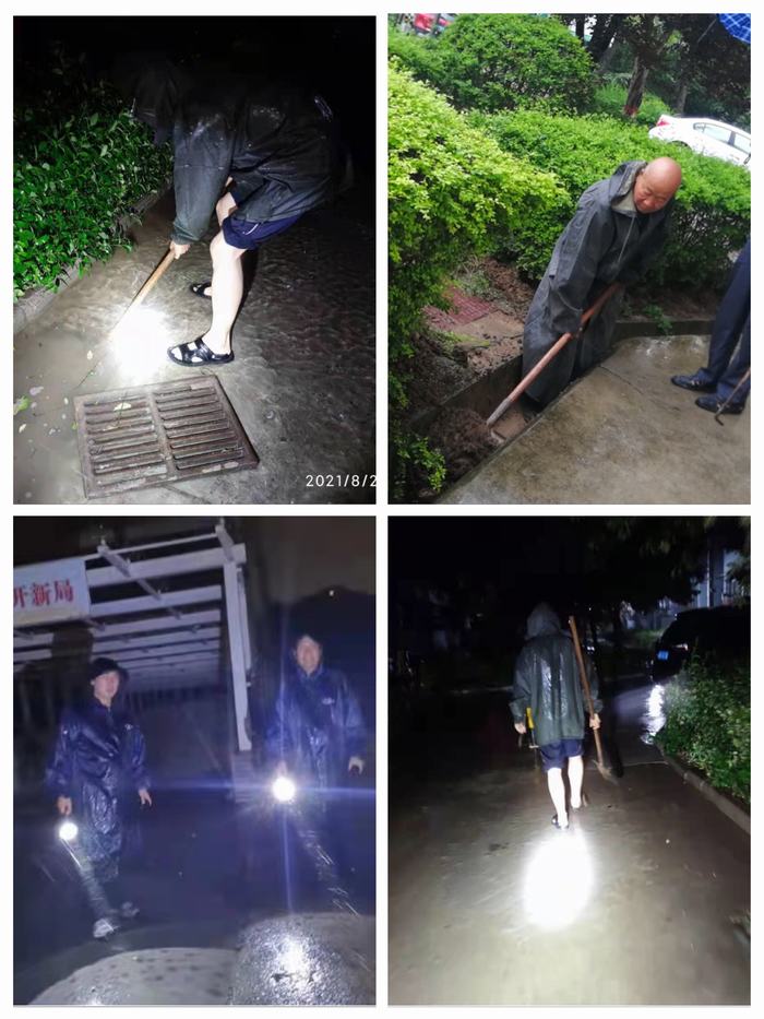 暴雨來襲,傾盆的大雨沒有影響物業(yè)人的堅守,他們在小區(qū)的每條道路上不間斷來回巡查,排查道路積水情況和下水口的疏通情況。他們疏通下水口,或一遍遍重復(fù)著掃雨,雨不停,他們不停。雨水短暫的停歇后又是一場暴雨,他們身上被淋濕的衣物還未干,卻又義無反顧奔波在小區(qū)的每條路上,為行人車輛出行保駕護(hù)航。