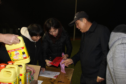 愿景園小區(qū)的操場周圍懸掛著400余條謎語競相爭輝,營造出一種溫暖祥和、和諧雅致的氛圍。謎面科學而通俗,有猜字的、有成語的、有人名的、有地名的、有地方景色的等等,生動而活潑,面廣而量大。在益智添趣、娛樂生活的同時,更以這種傳統(tǒng)高雅的文藝形式展示了一方水土歷史、自然、經(jīng)濟、人文、民俗之特色與魅力,集趣味性、知識性于一體,讓大家樂中有學,共同領略祖國語言的無窮奧妙。來猜謎的業(yè)主們爭先恐后的將猜對的謎語拿到工作人員處兌獎,每個人臉上都洋溢著開心的笑容。 |