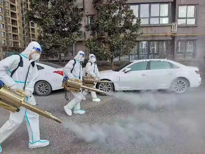 工作人員身著防護服、身背專業(yè)消殺儀器對城投物業(yè)服務項目所轄區(qū)域的大門口、主干道、樓道口、電梯、垃圾桶、活動廣場、游樂區(qū)、辦公區(qū)等進行全方位覆蓋式集中消殺,確保應消盡消,不留死角,為小區(qū)業(yè)主的生命安全筑起一道“防疫鐵墻”!
